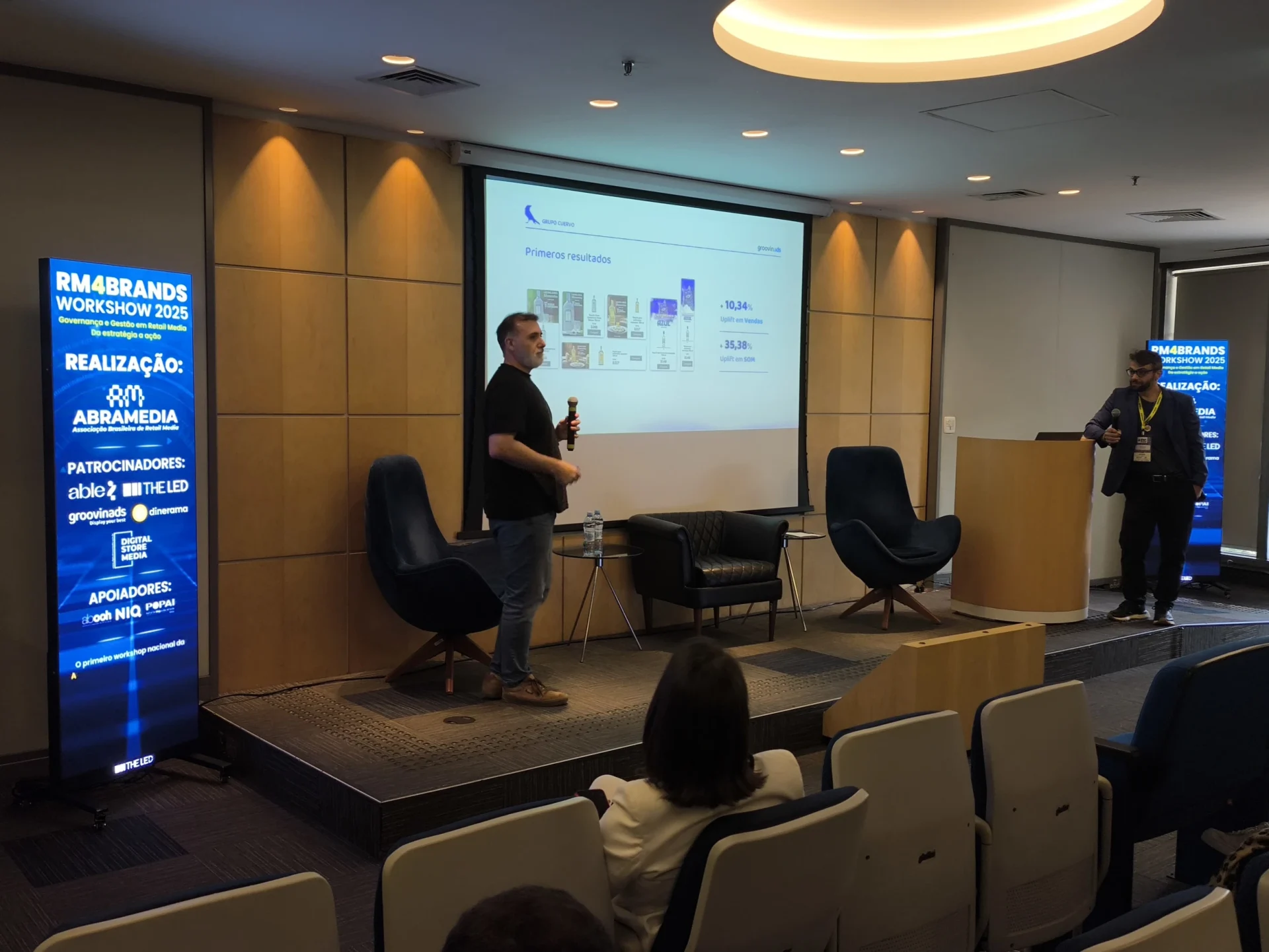 Durante o painel “O que os cases nos contam sobre o amanhã do Retail Media”, realizado na reta final do RM4Brands Workshow, os executivos Paulo Alvarenga (Country Manager) e Pablo (Sales Business Development) da Groovinads apresentaram um dos cases mais comentados do evento: o projeto Tequilas Gran Centenario em Walmart México, exemplo concreto de como inteligência de dados, tecnologia e governança comercial podem redefinir a performance e o papel do Retail Media nas marcas CPG.