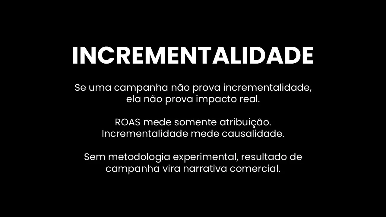 | Métrica | ROAS Tradicional | Incrementalidade |