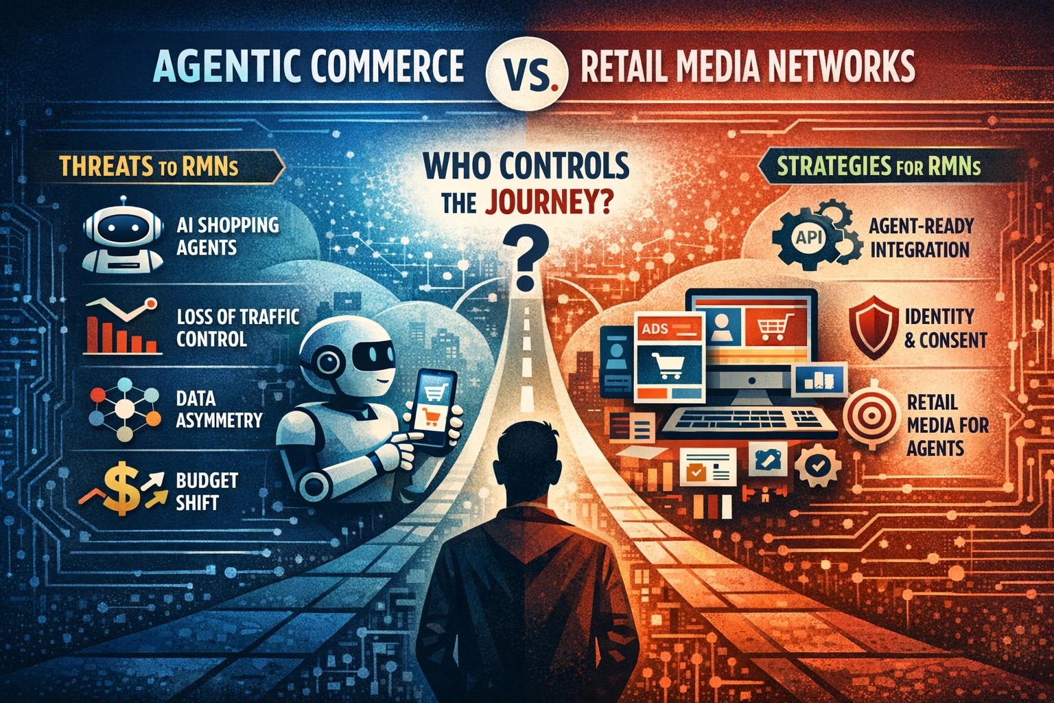 A NRF 2026 consolidou um sentimento que já vinha crescendo silenciosamente no mercado CPG: o receio de que agentes de IA passem a intermediar a jornada de compra de forma tão profunda que os varejistas e, por consequência, suas Retail Media Networks (RMNs), percam controle sobre discovery, decisão e monetização. O discurso ganhou força com análises mais alarmistas ao questionarem se o agentic commerce representaria “o fim das RMNs”. A pergunta é legítima. A resposta curta é: não, mas expõe fragilidades estruturais que o mercado vinha adiando enfrentar.